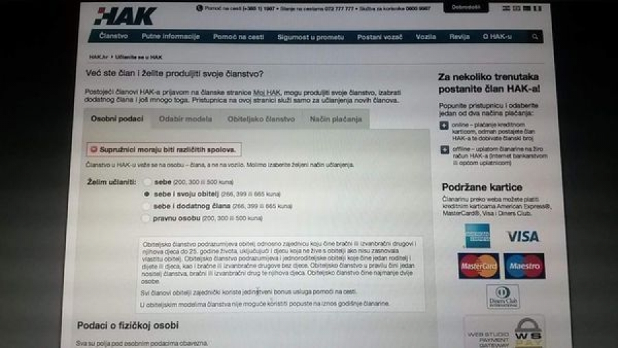 “Niz pogodnosti i ušteda na putovanju i pri kupnji raznih proizvoda i usluga bile su dostupne samo članovima HAK-a, od sada su dostupne i svim članovima vaše obitelji kroz HAK Obiteljsko članstvo“, reklamira HAK svoju uslugu na službenim internetskim stranicama. No, uštede koje možete ovim putem ostvariti nisu dostupne i životnim partnerima jer HAK-ovo shvaćanje obiteljske zajednice razlikuje se od onog kako ga shvaćaju pozitivni zakonski propisi ove zemlje. Naime, na stranici stoji napomena da supružnici moraju biti različitih spolova.